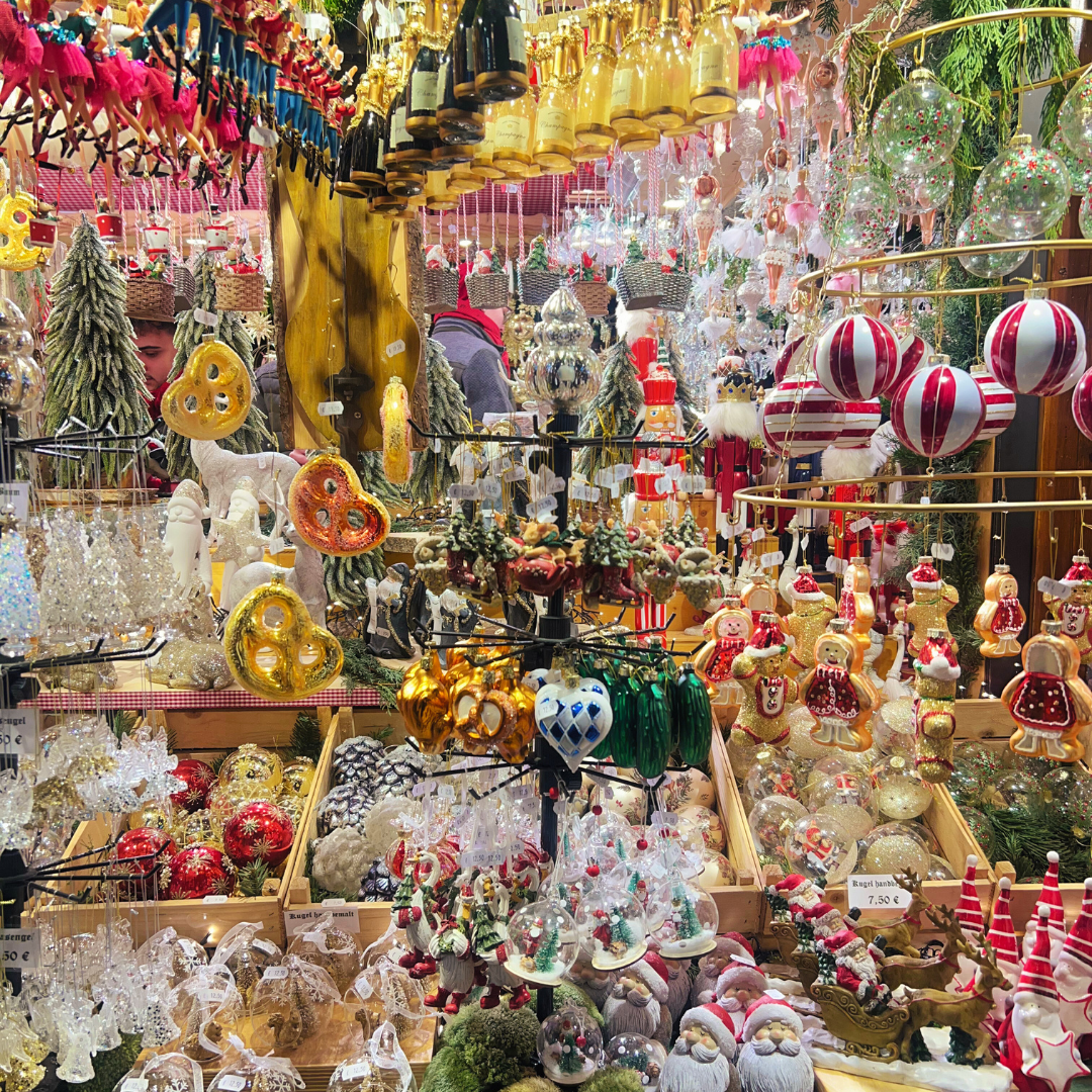 At Marienplatz, the atmosphere shifts as we enter the famed Christmas Market. The Glockenspiel marks the square’s center, while the surrounding stalls offer holiday crafts, handmade ornaments, and seasonal treats. It’s a vibrant scene, blending tradition and festive energy in the heart of the city.