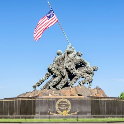 Visit America’s most iconic war memorials, including Iwo Jima, Vietnam, and WWII