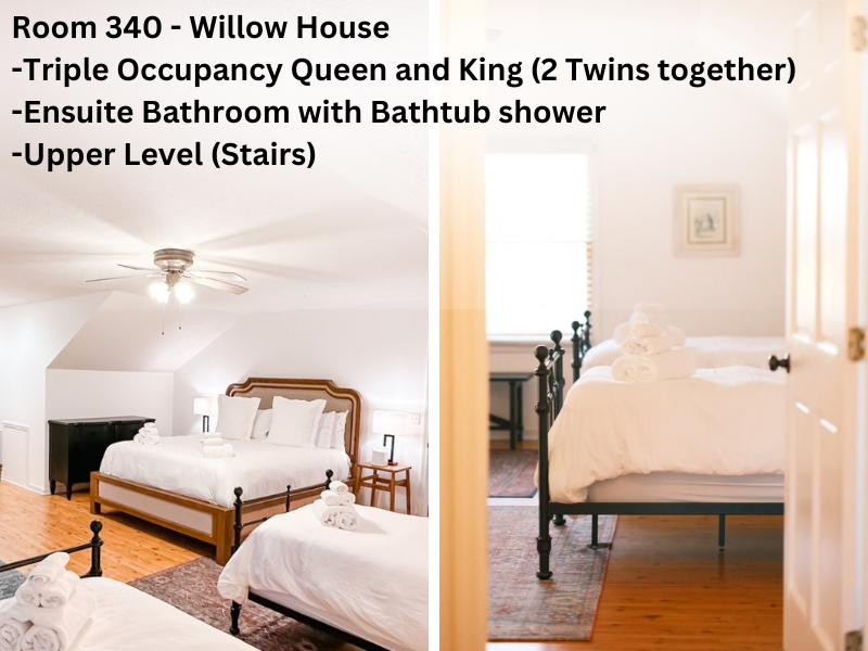 | Private Room with Private Bath | Shared Room, Separate Beds, Shared Bath |