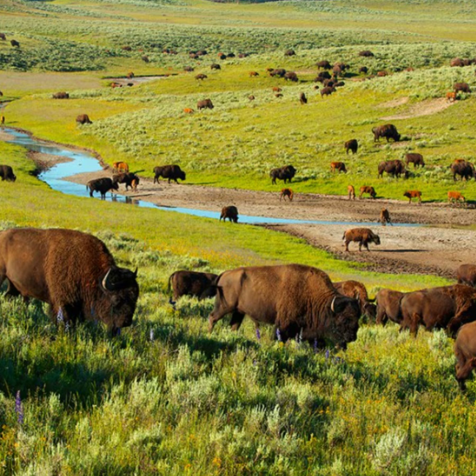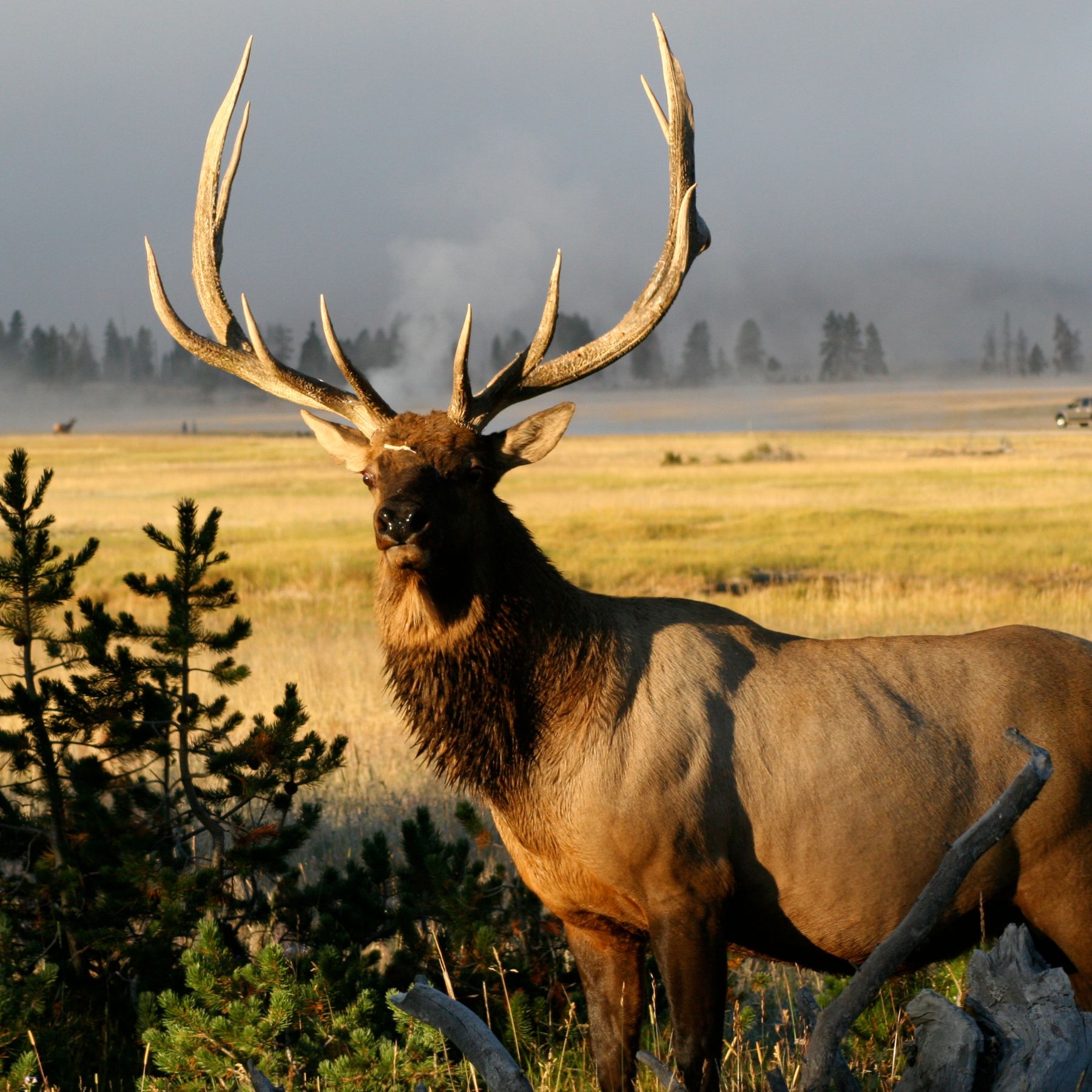 Early-morning wildlife viewing — look for grizzlies, bison, elk, and moose
