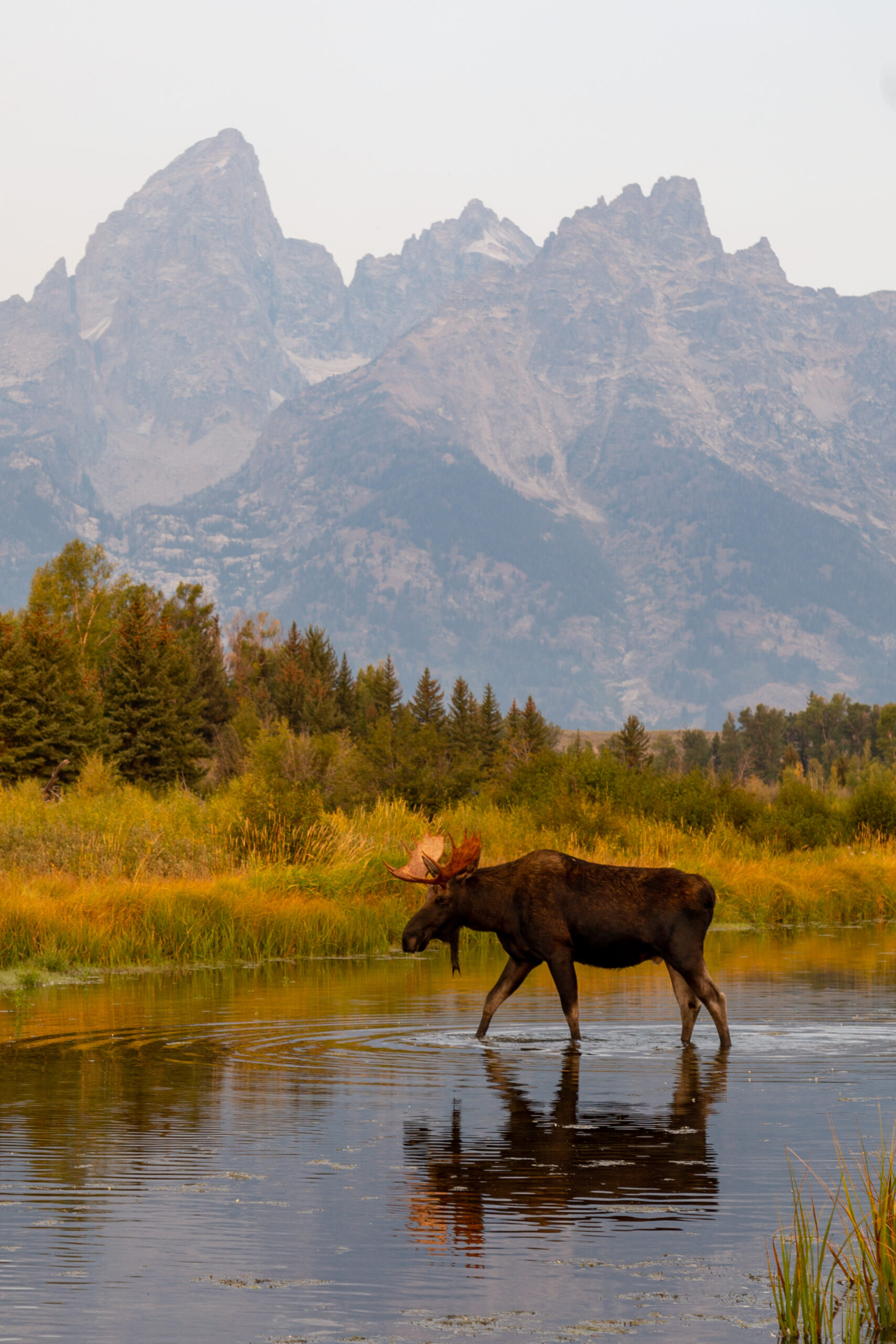 We’ll depart Rustic Inn at 7 AM for a full day exploring the incredible scenery and wildlife of Grand Teton National Park. The early morning light is ideal for spotting wildlife, and we’ll travel along the Gros Ventre River, where moose, elk, and pronghorn often gather to graze and drink. Our guides will take us to the best viewing areas for unforgettable sightings before the park grows busier.