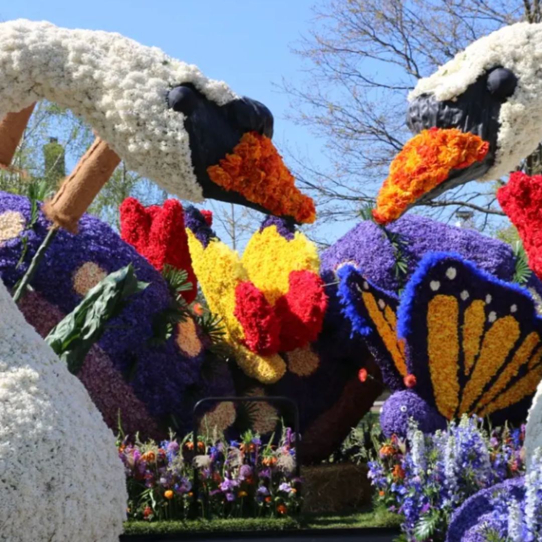 This morning, we’ll depart and arrive at our grandstand viewing area, where you’ll experience the vibrant start of the parade in style and comfort. As the floats begin to pass, you’ll be swept into a world of color, creativity, and fragrance. Each life-sized float is crafted entirely from real flowers—tulips, daffodils, hyacinths, and roses—arranged in breathtaking designs that move to the rhythm of live music and joyful celebration.