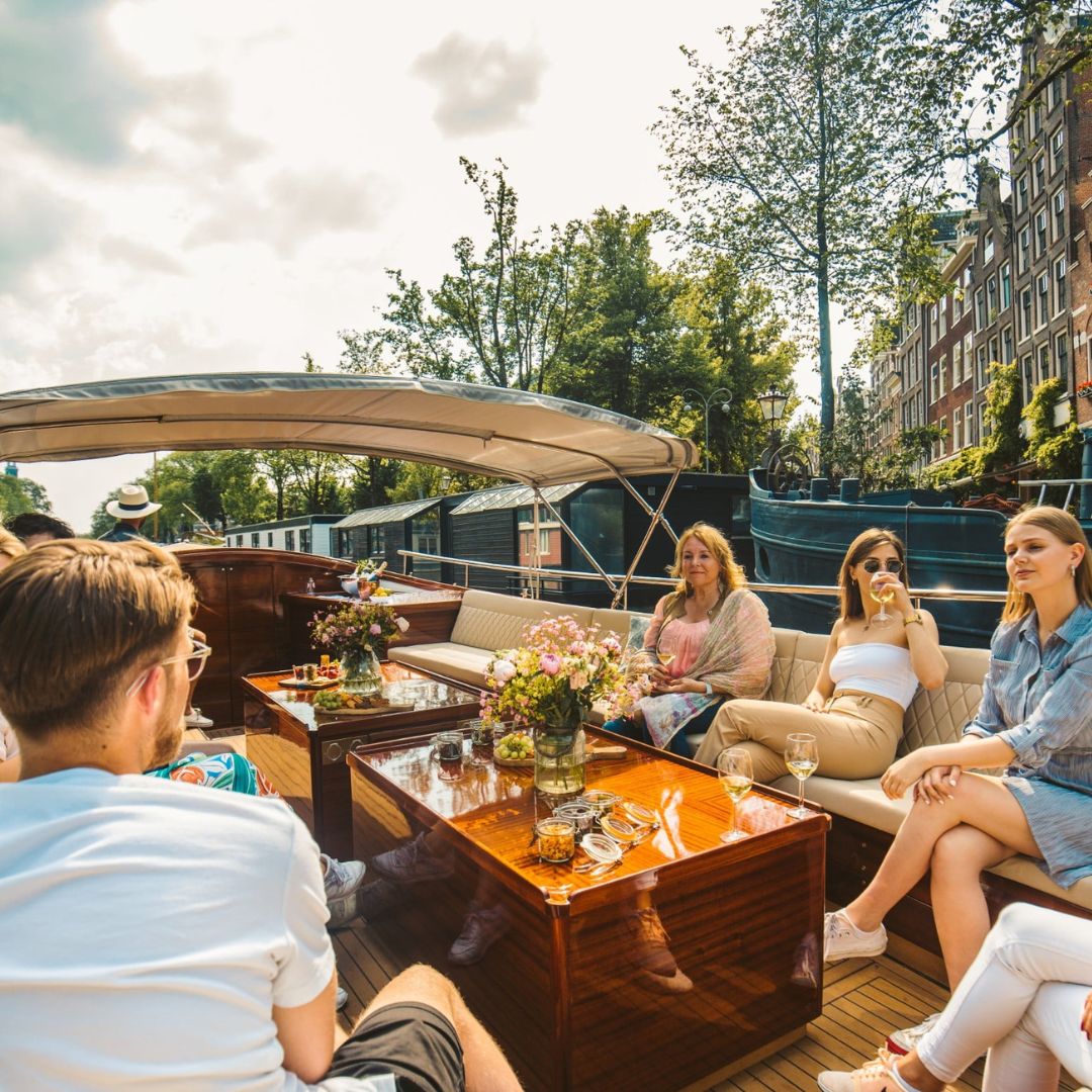 After this cultural deep dive, prepare to see Amsterdam from its most graceful angle—by boat. Step aboard a private canal cruise and float through the city’s historic waterways in comfort and style. This isn’t your average boat ride—it’s an intimate, elegant experience with stunning views around every bend. Gabled rooftops, blooming window boxes, and centuries-old bridges create a moving postcard, while your guide shares tales of the city’s past.