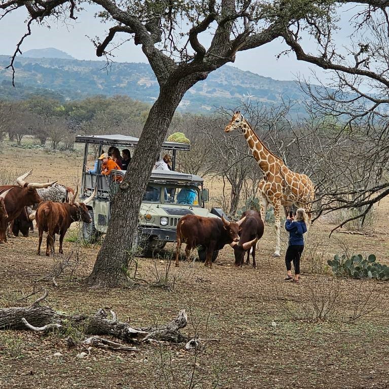 You don’t have to travel all the way to Africa to enjoy an African photo safari! (PLUS, WE LOVE THE USA!) Your Beatrice Bradley hosts along with private guides will take you on walking and riding open air jeep safari’s each day. You will be amongst giraffes, zebras, wildebeests, ostriches, water buffalos, springboks, elands, addax antelopes, sables, watusis, kudus, scimitar oryx and dozens of other species! You will be in over 18,000 acres of beautiful Texas Hill Country with thousands of free-ranging wildlife. The private guides that our group will have exclusively are extremely friendly and will work with you to get you that once-in-a-lifetime photo that you have been searching for!