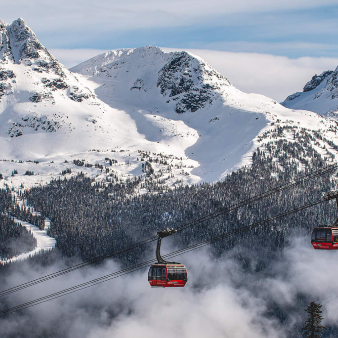 Ride the world-renowned Peak 2 Peak Gondola for breathtaking views of alpine valleys, snow-covered forests, and towering mountain peaks. -