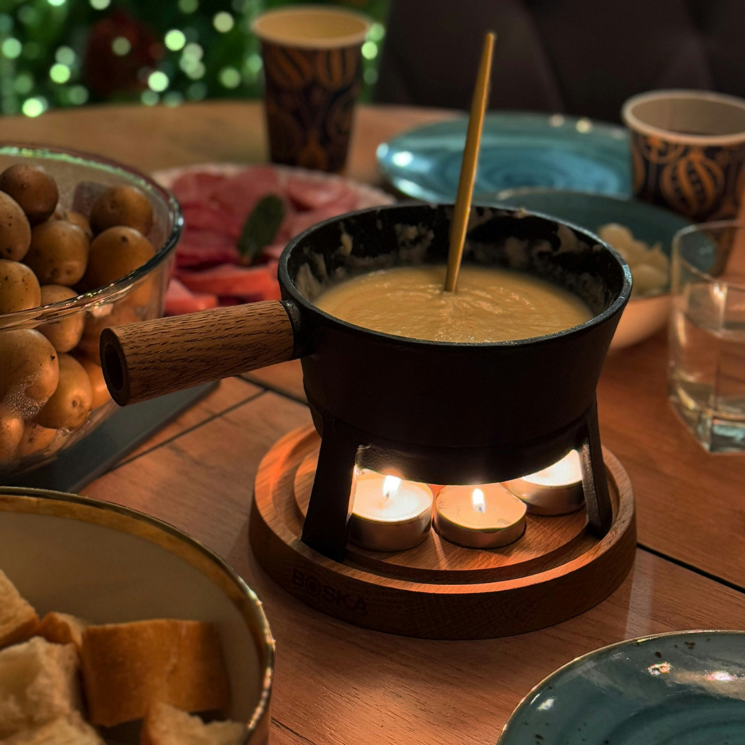 As night falls, we’ll embark on the Crystal Hut Fondue by Snowcat adventure. A heated snowcat will carry the group up the mountain, climbing through snowy forests and open slopes until reaching a charming, candlelit hut at elevation. Inside, you’ll enjoy a hearty fondue dinner paired with mountain views, soft glow, and the unique charm of dining high above the village. It’s a magical winter experience that blends comfort, flavor, and alpine atmosphere.